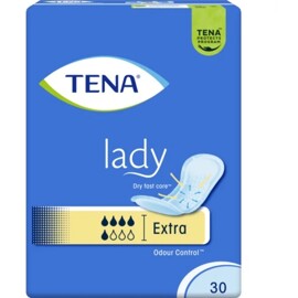 TENA Lady Extra on erittäin korkean imeytymiskyvyn omaava tuote verrattuna tavalliseen siteeseen. Ainutlaatuinen pintaohutus johtaa virtsan nopeasti tehokkaaseen ytimeen ja kapseloi sen sinne. Odour Control estää ei-toivotun hajun syntymistä ja vähentää sitä, mikä antaa raikkaan tunteen. Muotoilu tarjoaa hyvän istuvuuden, joka seuraa kehon luonnollisia muotoja, ja imeytymisalue tarjoaa lisäturvaa. Suojan pituus on 34 cm ja se on suunniteltu naisille, joilla on kohtalainen virtsankarkailu.