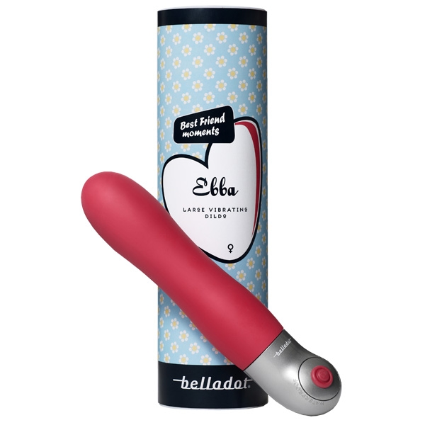 Belladot Ebba on Belladotin suurin dildo. Sen kaareva muotoilu ja mattapintainen, pehmeä pinta kätkevät sisäänsä erittäin voimakkaan värinämoottorin. Yhdellä napin painalluksella voit säätää kolmea eri nopeutta. Ebba on kooltaan suuri ja sen voimakkaat värinät takaavat nautinnollisen kokemuksen. Värinämoottori sijaitsee kovan varren yläosassa, mikä stimuloi myös g-pistettä. Tämä on suuri ja voimakas ystävä, joka pitää lupauksensa. Ominaisuudet: • Silkkisen sileä pinta• Voimakas moottori• Kolme erilaista värinää• Vesitiivis• Ø:40 mm• L:155 mmMukana tulee säilytyspussi. Dildo vaatii kaksi C-paristoa, eivät sisälly pakkaukseen.