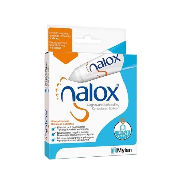 Naloxilla on kolminkertainen vaikutus kynsien hoitoon, jotka ovat vaurioituneet tai värjäytyneet sieni-infektion, psoriasiksen tai ulkoisen vamman vuoksi. Naloxilla on fyysinen sieniä tappava vaikutus, joka tappaa sienisolut, jotka yleensä aiheuttavat kynsisienitulehduksen. Sitomalla kosteutta kynnessä Nalox luo vahvemman ja toimivamman kynsipinnan ja pitää kynnen hyvässä kunnossa samalla kun vaurioitunut kynsikudos poistuu, mikä luo pehmeämmän ja vähemmän paksun kynnen ja poistaa värjäytymisen.