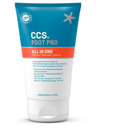 CCS FOOT PRO All-In-One on kehitetty jaloille, joilla on erittäin kuiva iho, kovettumia ja halkeilevia kantapäitä. Koostumuksella on viisi toimintoa: se antaa intensiivistä kosteutusta, pehmentää kovaa ihoa, poistaa kuolleita ihosoluja, parantaa ihon suojabarriääriä ja ehkäisee pahaa hajua. Voide sisältää 10 % karbamidia kosteuden sitomiseen, kauraöljyä, joka vahvistaa ihon barriääriä, sekä eukalyptusöljyä, joka ehkäisee pahaa hajua. Dermatologisesti testattu ja vegaaninen.