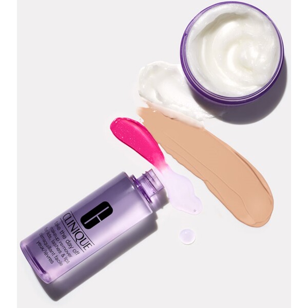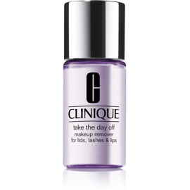 Take the Day off Makeup Remover for Lids, Lashes and Lips Clinique -merkiltä on meikinpoistoaine, joka poistaa nopeasti itsepäisen silmä- ja huulimeikin. Täydellinen myös vedenkestävälle ripsivärille.