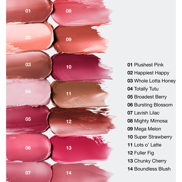ricinus communis (castor) seed oil, caprylic/capric triglyceride, vegetable oil\olus\huile végétale, euphorbia cerifera (candelilla) wax\candelilla cera\cire de candelilla, beeswax\cera alba\cire d'abeille, ozokerite, butyrospermum parkii (shea butter), hydrogenated vegetable oil, simmondsia chinensis (jojoba) seed oil, tocopherol, butyrospermum parkii (shea butter) extract, mangifera indica (mango) seed butter, limnanthes alba (meadowfoam) seed oil, hydrogenated olive oil, helianthus annuus (sunflower) seed oil, [+/- mica, iron oxides (ci 77491), iron oxides (ci 77492), iron oxides (ci 77499), titanium dioxide (ci 77891), yellow 5 lake (ci 19140), red 7 lake (ci 15850), red 30 lake (ci 73360), red 6 (ci 15850), yellow 6 lake (ci 15985), blue 1 lake (ci 42090), red 22 lake (ci 45380), carmine (ci 75470), red 33 lake (ci 17200), red 28 lake (ci 45410), bismuth oxychloride (ci 77163)]