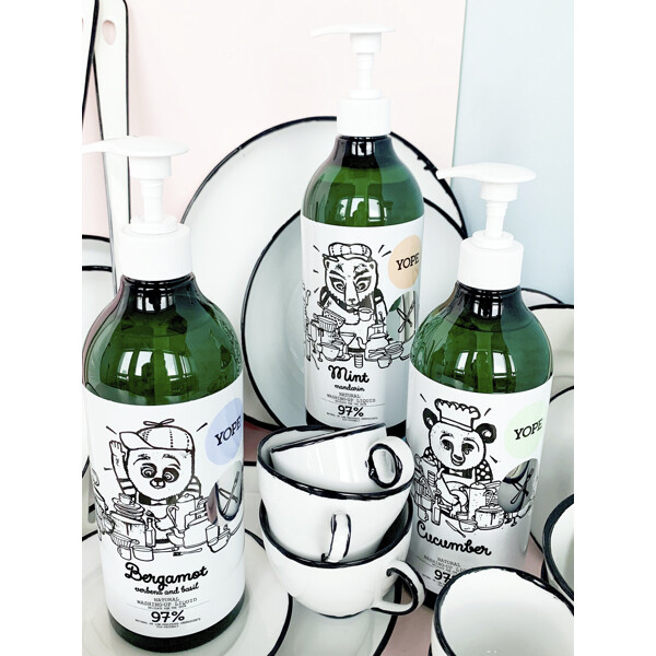 5-15% anionic surfactants, <5% non-ionic surfactants, <5% amphoteric surfactants, preservative (Methylisothiazolinone, Benzisothiazolinone), parfum. Other ingredients: basil extract, bergamot extract, verbena extract. Suitable for vegan, no animal ingredients.