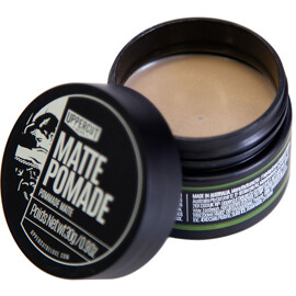 Matte Pomade Uppercut Deluxelta on vesipohjainen pomade, joka antaa keskivahvan pidon luonnollisella ja mattapintaisella viimeistelyllä. Sopii kaikille hiustyypeille ja -pituuksille sekä on helppo pestä pois.