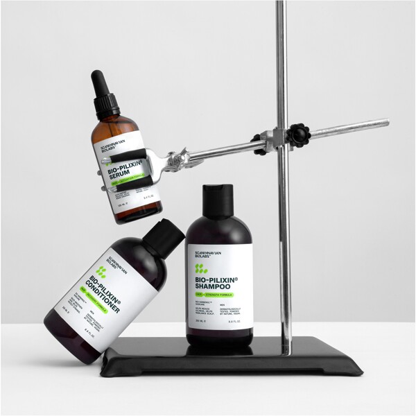 Scandinavian Biolabs 3-Step Routine on erityisesti suunniteltu auttamaan hiustenlähdön vähentämisessä, tukemaan hiustenkasvua ja auttamaan ylläpitämään terveitä ja vahvoja hiuksia. Jokainen tuote sisältää kasviainesosia ja jotkut on kehitetty kantasoluteknologian avulla, hoitamaan hiustuppeja ja edistämään hiustenkasvua.