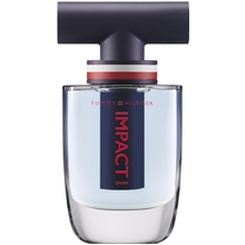 Läpinäkyvä, lasimainen pullo on raikastettu punaisin sävyin ja sisältää vaaleansinisen tuoksunesteen. T-mallisessa korkissa on nostettu esiin TOMMY HILFIGERIN klassinen puna-siniävalkoinen väripaletti. Erityinen muotoilu on tunnusomaista kaikille IMPACT-tuoksuille ja mahdollistaa jotain lisää – 100 ml pullon sisällä on lisätuoksu matkakoossa, joka on helposti pakattavissa matkalle mukaan.