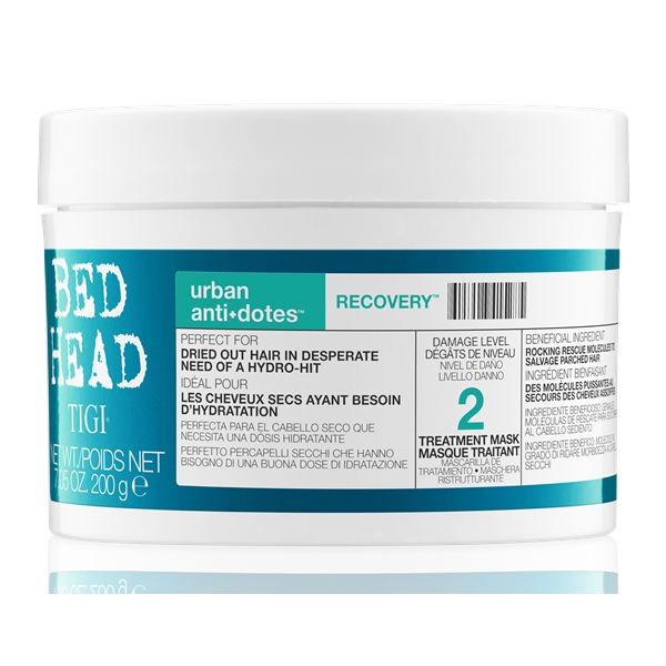 Urban Anti-Dotes Recovery Treatment Mask Tigiltä on ihana tehohoito, joka kosteuttaa ja säilyttää kosteuden voimakkaissakin hiusmuotoiluissa. Se sisältää Core Repair -teknologiaa, joka tunkeutuu hiussuortuvan sisälle antaen sille runsaasti eheyttäviä proteiineja.