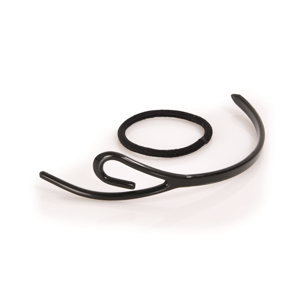 • Laita välineen paksumpi pää poninhännän keskelle, ylhäältä alas, kunnes lenkki on poninhännän yläpuolella