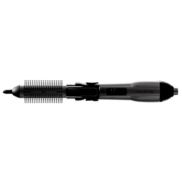 Rullaa yksi hiuskiehkura yläs pyöröharjan avulla ja valitse lämpötila. Anna olla kunnes hiukset ovat kuivat. Muuta sitten "cooling" asetukselle kiinnittääksesi kiharan. Poista sitten curl styler ja jatka seuraavalla hiuskiehkuralla.