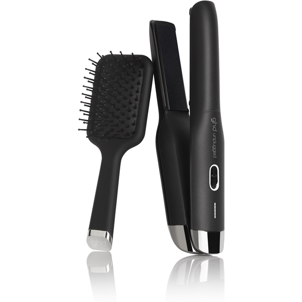 Ghd unpluggedin johdottoman ja helppokäyttöisen matkaraudan avulla voit luoda suoria kampauksia, kimmoisia kiharoita ja näyttäviä laineita.