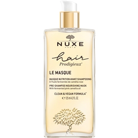 Nuxe Hair Prodigieux Pre Shampoo Nourishing Mask on intensiivinen öljyhoito, joka levitetään ennen shampoopesua. Muuta hiuksesi fermentoidun ruusukameliaöljyn ylevällä voimalla! Pre-Shampoo Nutrition Mask on Laboratoire Nuxen asiantuntemuksen tulos kasviöljyjen alalla ja se on todella ainutlaatuinen hoito. Tämä silikoniton maski fermentoidulla ruusukameliaroseöljyllä tarjoaa intensiivistä ravintoa ja korjaa hiusten kuituja. Tämä öljyhoito, jossa on legendaarinen Huile Prodigieuse® -tuoksu, kietoo hiukset uskomattomaan aistilliseen rituaaliin. Hiukset jäävät säteileviksi ja niillä on koukuttavan silkkisen pehmeä tunne.