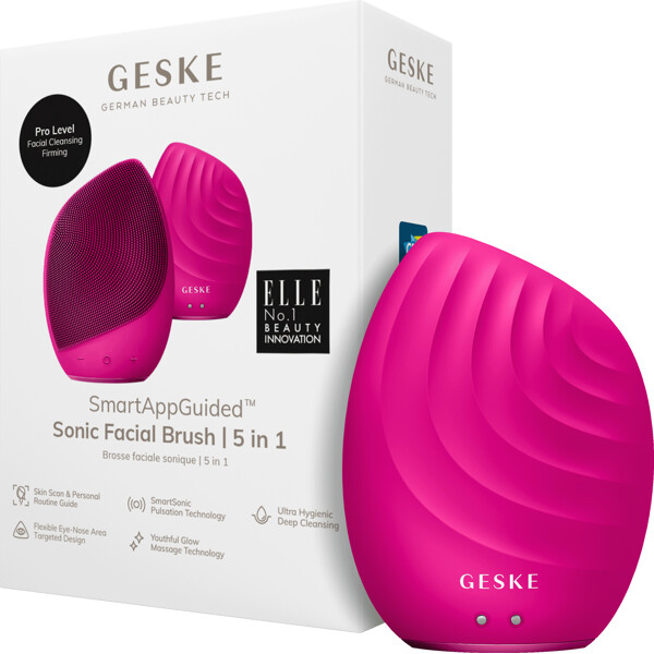 Täydellisesti puhdistettu, kosteutettu ja hyvin hierottu iho - tämä on lahja, jonka ansaitset joka ilta ennen nukkumaanmenoa. Ja GESKE on täällä toteuttamassa tämän sinulle SmartAppGuided™ Sonic Facial Brush | 5-in-1 avulla. Täynnä voimakasta omaa teknologiaa - Sonic Facial Brush | 5-in-1 on taskudynamo, joka auttaa sinua syväpuhdistamaan ihosi, valmistamaan sen ihonhoitoaineiden imeytymiseen, torjumaan ikääntymisen merkkejä tai yksinkertaisesti saamaan sinut tuntemaan olosi levänneeksi ihanan hieronnan avulla.