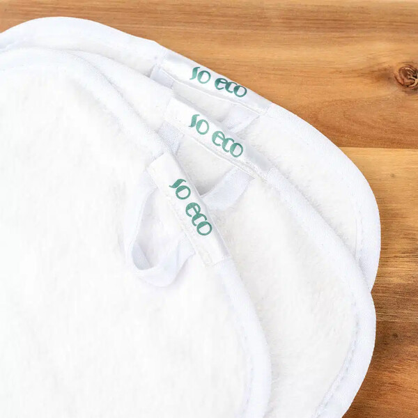 So Eco Facial Cleansing Cloths sisältää 3 suurta, erittäin pehmeää kasvoliinavaatetta. Ihanteellinen herkälle iholle.