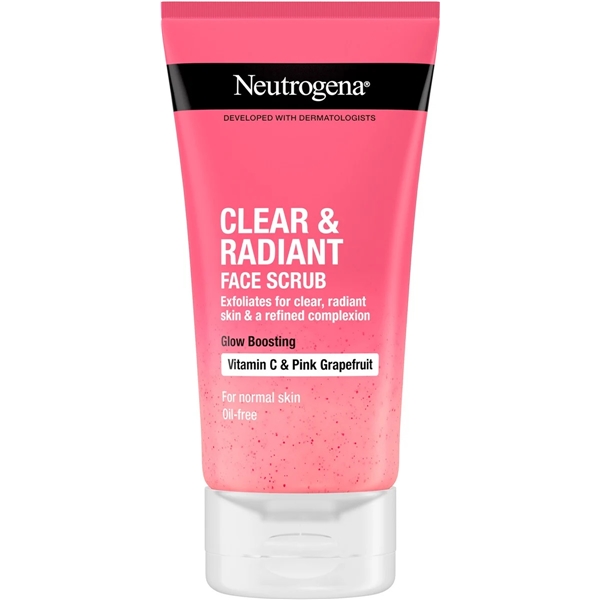 Neutrogena Clear & Radiant Face Scrub on virkistävä päivittäinen kasvokuorinta, joka sisältää pinkkiä greippiä ja C-vitamiinia, jotta iho olisi puhdas, raikas ja säteilevä.