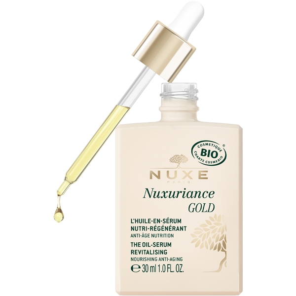 Nuxuriance Gold The Oil Serum Revitalising Nuxe on luonnollisesti elvyttävä ja hoitava kasvoöljyseerumi, joka auttaa vahvistamaan ja uudistamaan ihoa.