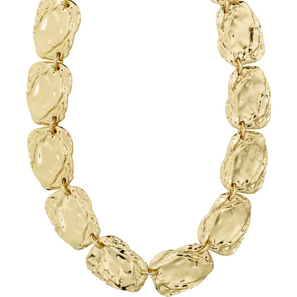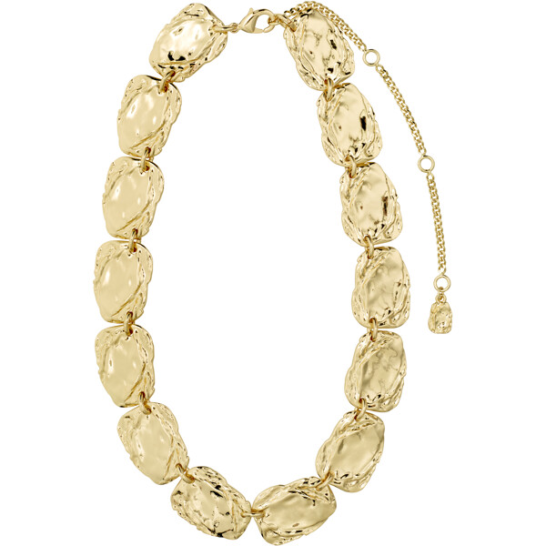 Kullanvärinen SHIFT-kaulakoru Pilgrimiltä on todellinen statement-kappale. Litistetyt kolikot ovat raakoja, rustiikkisia ja yhdistävät voimakkaan tunnelman rentoon, tyylikkääseen asenteeseen.