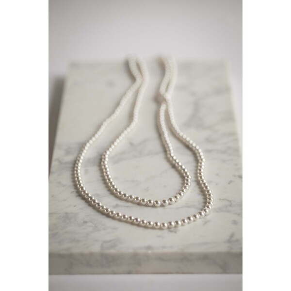 Tyylikäs, trendikäs ja kaunis kaulakoru, jossa on valkoisia hieman pienempiä simpukankuorihelmiä/helmiäishelmiä. Kaulakoru on pitkä – 110 cm ja voit pitää sitä kaksinkerroin kaulan ympäri, jos et halua käyttää sitä sellaisenaan. Kaulakorussa ei ole lukkoa/avausta.