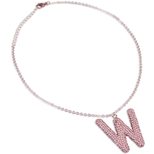 BLUSH Glitter W Necklace on hiukea statement-kaulakoru ja siinä on aiheena W-kirjain. W on kauttaltaan koristeltu vaaleanpunaisin sädehtivin lasikristallein ja metallinen ketju on pinnoitettu vaaleanpunaisella. Kaulaketju on nikkeliturvallinen.