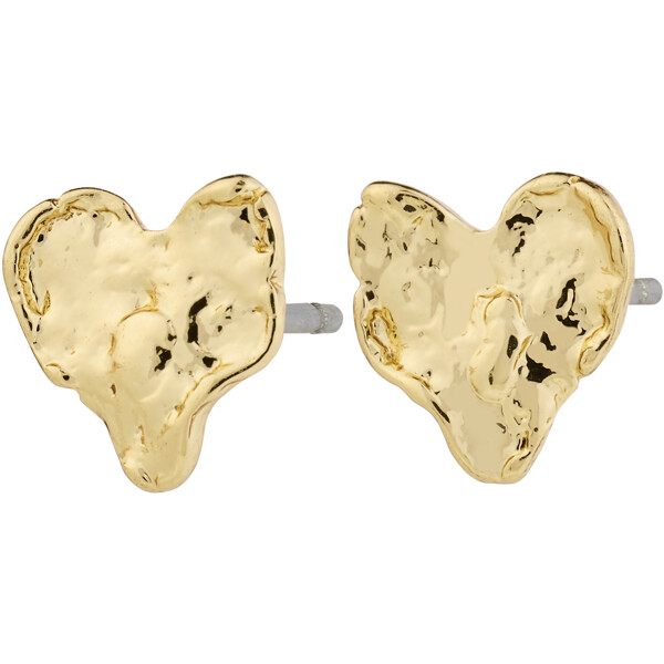 Drops of love! Kultapäällysteiset tappikorvakorut sydänkuviolla ja rustiikkisella käsintehdyllä tuntumalla, jotka tuovat leikkisän ja romanttisen tunnelman tyyliisi. Täydellinen lahja parhaalle ystävällesi, ystävänpäivänä tai milloin tahansa tuomaan rakastettavaa kosketusta arkipäivän tyyliin. Korvakorut ovat sarja kierrätettyjä esineitä, jotka on valmistettu 85% kierrätetystä materiaalista ympäristöä ajatellen.