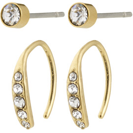 GIONNI-korvakoruilla Pilgrimiltä saat 2-in-1-setin, joka tarjoaa loputtomia stailausvaihtoehtoja. Pienet kullatut korvakorut Preciosa-kristalleilla ovat jokapäiväisiä must-have-tuotteitasi, kun taas pyöristetyt korvakoukut tuovat seuraavan tason kosketuksen, kun haluat maustaa tyyliäsi.