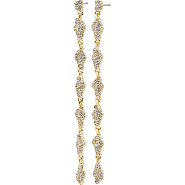 Pilgrimin kultapäällysteiset BASIL-korvakorut ovat täydellinen statement-koru sinulle, joka rakastat eksklusiivista, virtaavaa siluettia, jossa on runsaasti kiiltoa. Pitkät, orgaanisesti muotoillut lenkit on koristeltu Preciosa-kristalleilla, jotka vangitsevat valoa kaikista kulmista ja luovat ylellisen, dynaamisen ilmeen.
