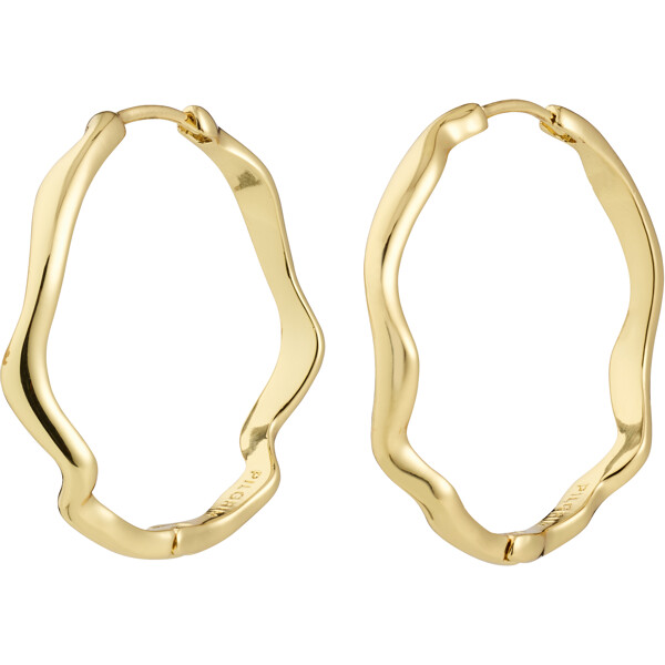 Pilgrimin LARKIN-korvakorut ovat aaltoilevan, vapaamuotoisen siluetin omaavat – raikas tulkinta klassisista korvarenkaista. Kultapäällysteiset aaltoilevat creolit ovat minimalistiset mutta silti vaikuttavat, ja ne vangitsevat kauniisti valoa luoden leikkisän ja elegantin ilmeen.