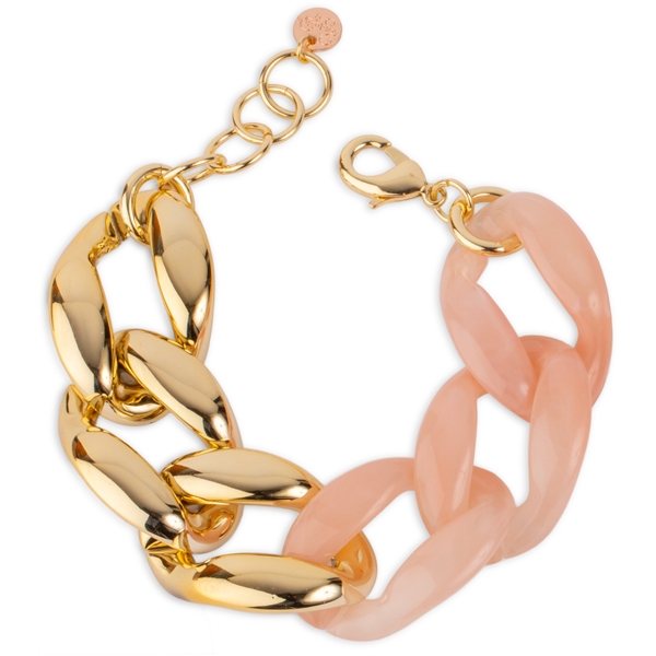 86045-01 Avenue Bracelet on ranneketju puuterinroosilla ja 18K kullatuilla resiinilenkeillä. Lukko ja lisäketju ovat metallisia 18K kultauksella.
