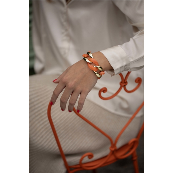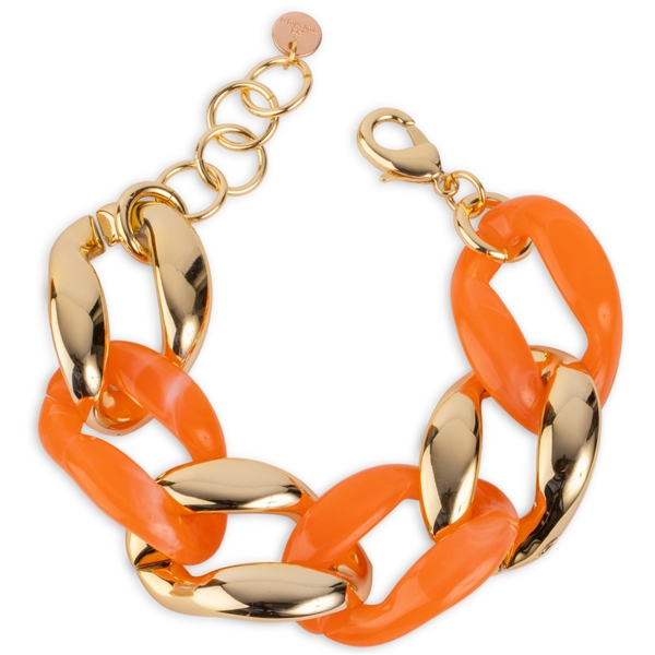 86046-12 Madrid Bracelet on rannekoru oransseilla ja 18K kullatuilta resiinilenkeillä. Kiinnike ja lisäketju kullattua metallia.
