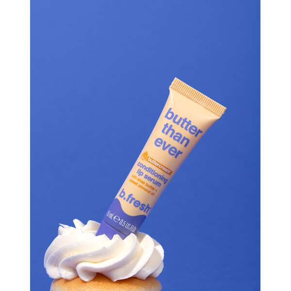 b.fresh Butter Than Ever Lip Serum on huuliseerumi, joka sisältää mantelivoita ja makeaa manteliöljyä, ja se hoitaa ja käsittelee huulia. Seerumissa on makea voikreemin tuoksu.