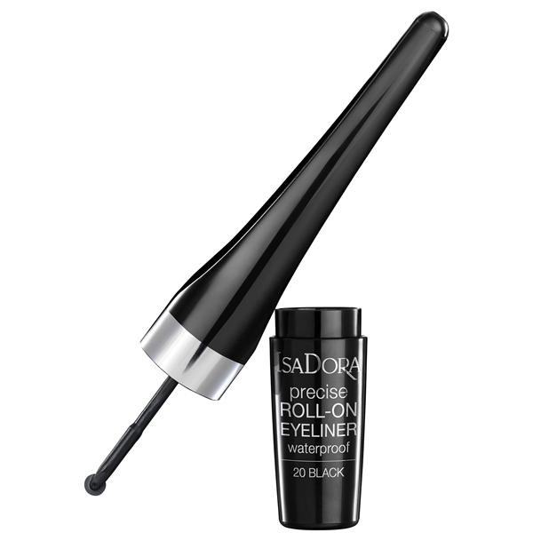 IsaDora Precise Roll On Eyeliner on nestemäinen eyeliner “roll-on”-levittimellä. ”Roll-on”-levittimen avulla on superhelppoa saada tasainen, jatkuva viiva luomelle. Voidaan rullata edestakaisin leveämmän viivan saamiseksi. Täydellinen kaikentyyppisille eyeliner-vaiktuksille – klassiset tai luovat viivat. Levitin on superhelppokäyttöinen ja nopea, pyörä antaa tasaisen, jatkuvan ja tarkan viivan ilman katkoja. Täydellinen saamaan tarkka eyeliner vinge. Siinä on täysi peittävyys, se kuivuu nopeasti ja se on vedenkestävä – pysyy erityisen kauan. Rulla on sinetöity muovikelmulla. Hajusteeton. Silmätautilääkärin testaama.