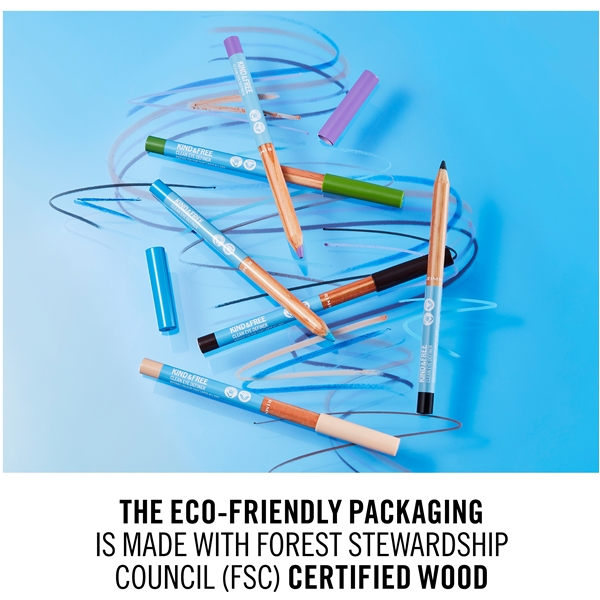 Itse eyelinern on 100 prosenttisesti vegaaninen eikä sen yhteydessä ole käytetty eläintestausta, pakkaus on valmistettu FSC-sertifioidusta puusta (Forest Stewardship Council).