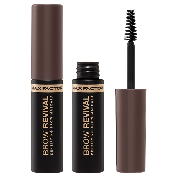 Max Factorin Brow Revival on kulmakarvaripsiväri kuiduin, antaen täyteläisen tuloksen, joka kestää koko päivän. Sisältää neljää pehmentävää öljyä: maracuja-, camelia-, argan- ja marulaöljyä. Minikuituharja antaa kätevän levityksen, peittäen jokaisen karvan.