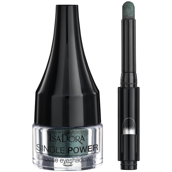 IsaDora Single Power Loose Eyeshadow on kimaltava irtopuuteri-luomiväri metallisävyin, sisäänrakennetulla huiskulla.