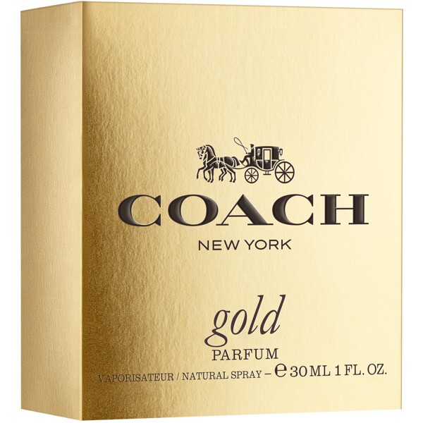 Coach Gold on muotoiltu samalla eksklusiivisuuden tunteella, jota tuoksu välittää. Pullo kimaltelee läpikuultavassa kultasävyssä ja sitä koristaa ikoninen ”C”-koru yhdessä irisoivan ripustustagin kanssa – yksityiskohtia, jotka heijastavat Coachin käsityöperintöä. Ulkopakkaus, jossa on kohokuvioitu hevos- ja vaunuembleemi kullassa, täydentää ylellisen kokonaisuuden.