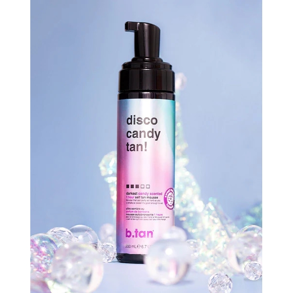 Disco Candy Tan! Self Tan Mousse on makean tuoksuinen itseruskettava vaahto. Se antaa luonnollisen tumman ja tyylikkään päivetyksen vain 1 tunnissa.