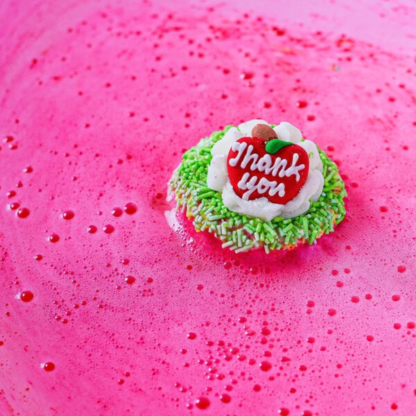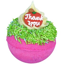 Thank You on kylpypommi, jossa on hedelmäinen kirsikan ja omenan tuoksu, joka leviää kylpyyn. Se kuplii kauniisti ja sisältää kaakao- ja sheavoita, jotka tekevät ihosta pehmeän. Makean appelsiinin ja bergamotin eteeristen öljyjen ansiosta kylpyhetkestä tulee ihana ja ylellinen kokemus – täysin parabeeni- ja säilöntäainevapaa.