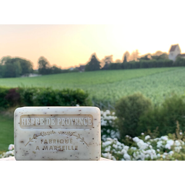 Sodium palmate, sodium palm kernelate, aqua, parfum, butyrospermum parkii, glycerin, sodium chloride, tetrasodium EDTA, tetrasodium etidronate, thymus vulgaris extract, thymus serpillum extract, origanum majorana herb extract, origanum flower/leaf/stem extract, rosmarinus officinalis extract, , ocimum basilicum flower/leaf/stem extract, artemisia dracunculus leaf/stem extract, salvia officinalis extract, anthriscus cerefolium extract, CI 58000, CI 99499, CI 12490
