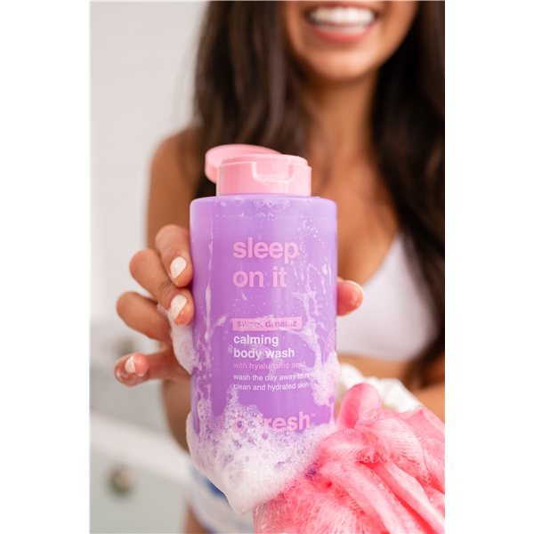 Sleep On It Calming Body Wash on rauhoittava suihkusaippua, joka sisältää sekoituksen luonnollisia ihoa rakastavia ainesosia. Se sisältää myös hyaluronihappoa, joka lisää kosteutusta sekä rauhoittaa ihoa ja tekee siitä silkkisen. Suihkusaippua on täynnä kasvi- ja mineraalipohjaisia ainesosia, jotka puhdistavat ihoa luonnollisesti.