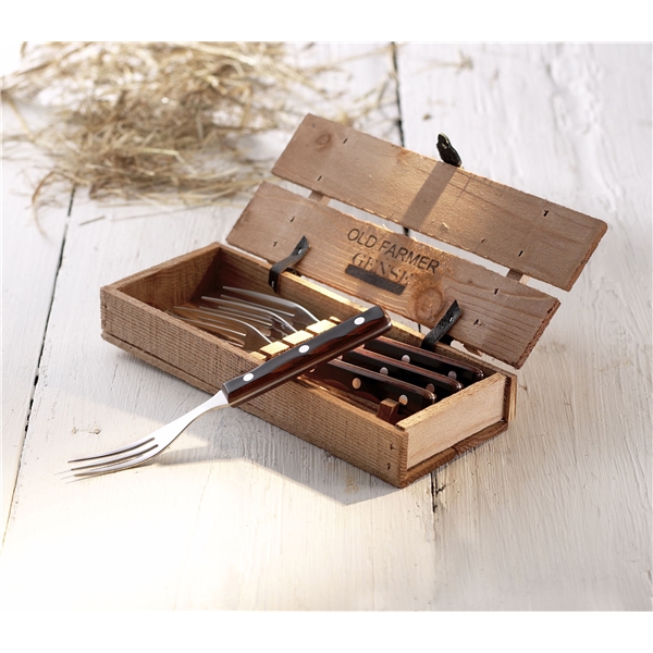 Tämä setti sisältää 4 haarukkaa jotka on pakattu kauniiseen puiseen laatikkoon.
