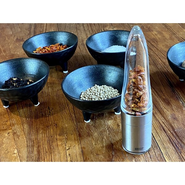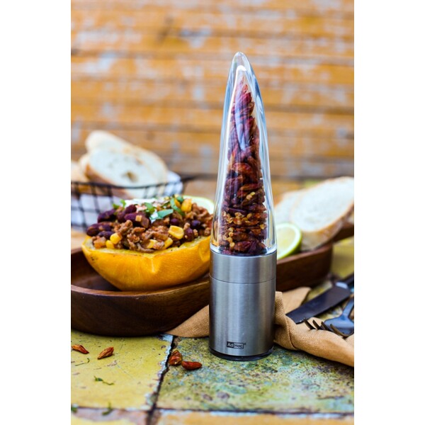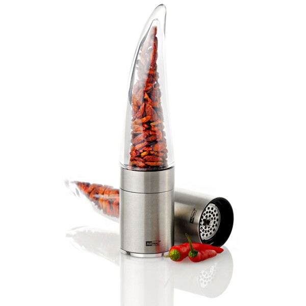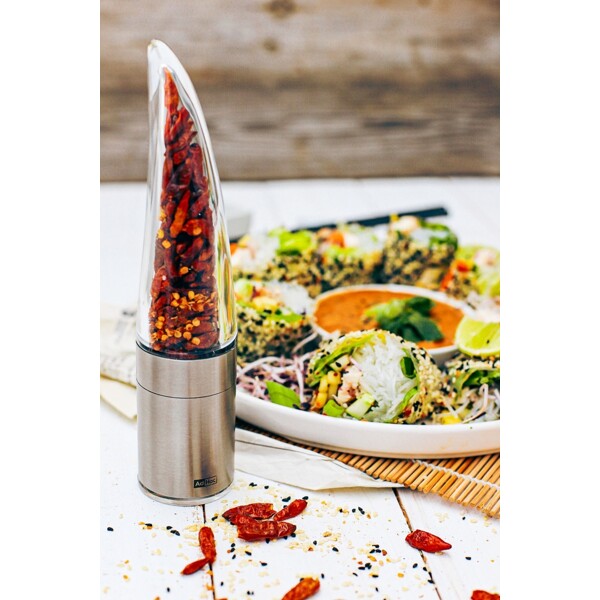 Innovatiivinen chilileikkuri ruostumattomasta teräksestä ja akryylistä alkuperäisellä AdHoc PreciseCut®:lla. On saanut "German Design Award 2018" -palkinnon. Suuri jauhesäiliö ja kätevä aromisuojakansi.