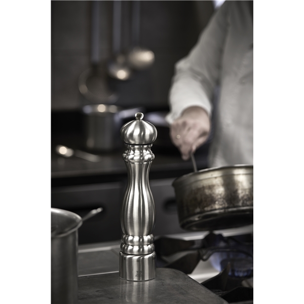 Peugeotin suolamylly Paris Chef on hieno ja käytännöllinen mylly. Myllyssä on suuri kapasiteetti ja se sopii myös ammattikeittiöön. Paris Chef -sarja muistuttaa klassista Paris-myllyä, mutta se on kauniin kiiltävää ruostumatonta terästä. Saatavilla eri kokoja.