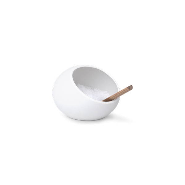 Rosendahlin pyöre suolasirotin on valmistettu valkoisesta posliinista kiiltävällä pinnalla sisäpuolella ja mattapinnalla ulkopuolella. Sirottimen mukana tulee pieni lusikka käsittelemätöntä eurooppalaista tammea, joka pitää sirottimen hygienisenä. Valkoisen posliinin, pyöreän muotoilun ja tammilusikan yhdistelmä antaa sirottimelle pelkistetyn, pohjoismaisen ilmeen. Aseta tämä koristeellinen sirotin keittiöön ja sinulla on aina käden ulottuvilla tuoretta merisuolaa ruoanlaittoon, täi aseta se suoraan ruokapöytään ja vieraasi saavat maustaa ruokansa itse. Sirotinta voi myös käyttää kuivatuille laakerinlehdille tai tuoreille yrteille.