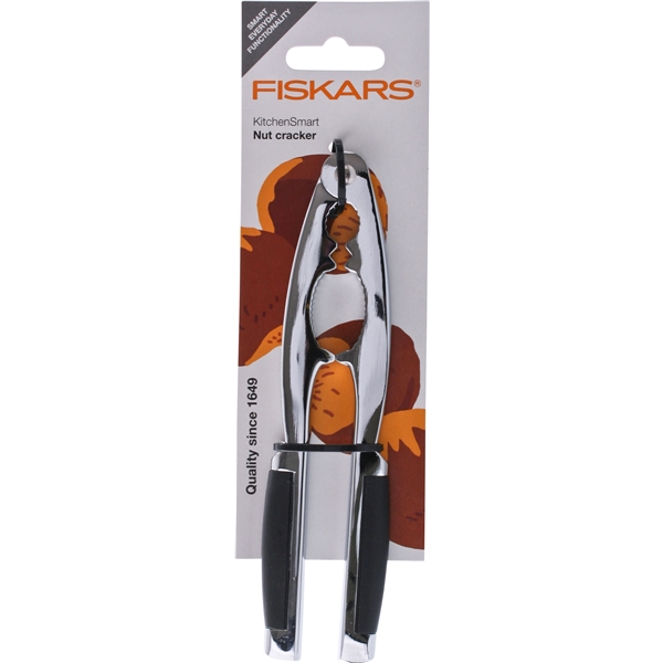 Kookas pähkinänsärkijä liukuesteen sisältävällä kädensijalla, sopii useimmille pähkinälajeille. Koko: 17 cm. Väri: musta.
