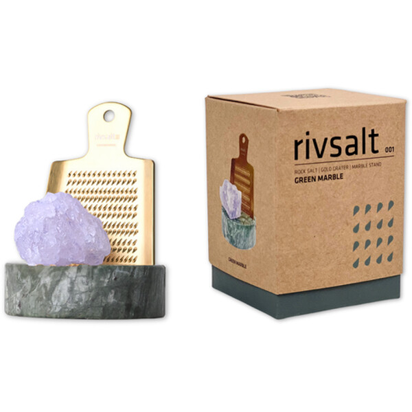 Saat pidetyn ja puhutun rivsalt-toiminnallisuuden, mutta nyt premium-viimeistelyllä kauttaaltaan, kuten kultapäällysteinen ruostumattomasta teräksestä valmistettu raastinrauta, vihreästä marmorista valmistettu pöytäteline sekä eksklusiivinen sininen suolakivi. Tämä on lahja henkilölle, joka vain tarvitsee sen pienen lisän jo ennestään eleganttiin kotiinsa.