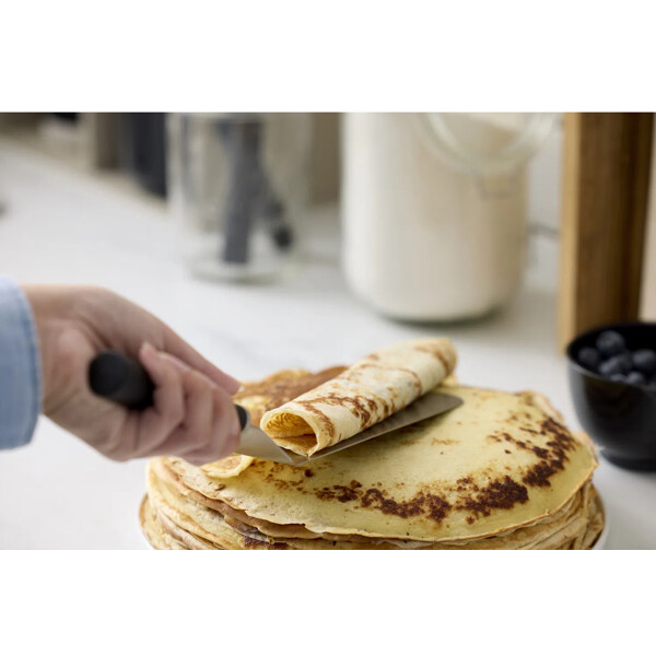 Emma-teräspalettiveitsessä on pitkä, kapea terä, jossa on kaarevuus, mikä tekee siitä täydellisen pannukakkujen kääntämiseen, kuorrutteen levittämiseen ja paljon muuhun. Keittiöväline, jota käytät yhä uudelleen – missä tyyli kohtaa toiminnallisuuden.
