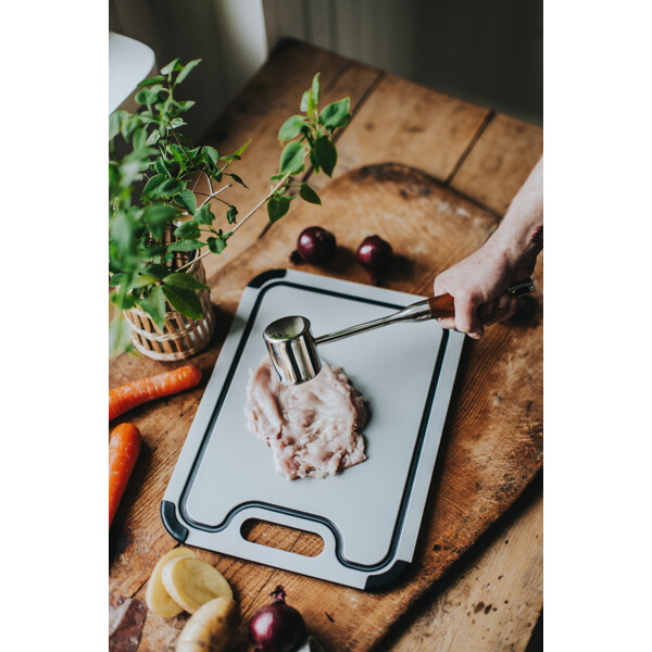 Vankka lihanuija, jossa on puinen kahva, joka tarjoaa mukavan otteen. Täydellinen lihan mureuttamiseen ja lihanpalojen tasoittamiseen ennen kypsennystä. Kestävä rakenne yhdistää toiminnallisuuden ja tyylin, ja siitä tulee keittiön korvaamaton väline.