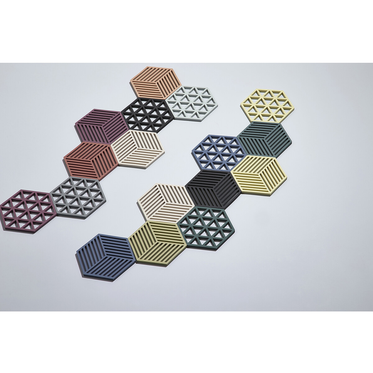 Sarjan on luonut suunnittelijakolmikko VE2. Hexagon on saatavilla monissa jännittävissä väreissä ja se on täydellinen yhdistettäväksi Triangles-pannunalusten kanssa, joilla on samat ulkomitat.