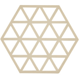 Triangles-silikonpannunaluset ovat niin graafisesti koristeellisia, että ne houkuttelevat asettamaan useita kappaleita pöydän koko pituudelle ilman, että niille asetetaan mitään. Ne kestävät lämpöä jopa 250 °C ja ne voidaan pestä astianpesukoneessa. 16 x 14 x 0,9 cm.
