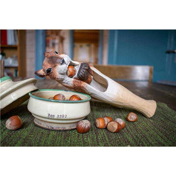 Wildlife Gardenin pähkinänsärkijä on massiivista puuta lehmuksesta. Pähkinänsärkijällä voit rikkoa 3 suurta pähkinää puristamalla kahvat yhteen. Valmistettu käsin hiotusta puusta ja maalattu ympäristöystävällisin värein.