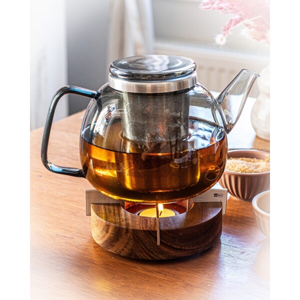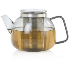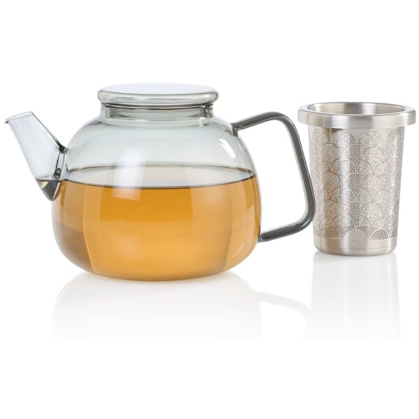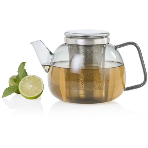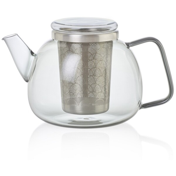 Teekannu, jossa on suuri hienosuodatin optimaalista aromin kehittymistä varten. Valmistettu suupuhalletusta lasista, mikä tekee jokaisesta kannusta ainutlaatuisen.